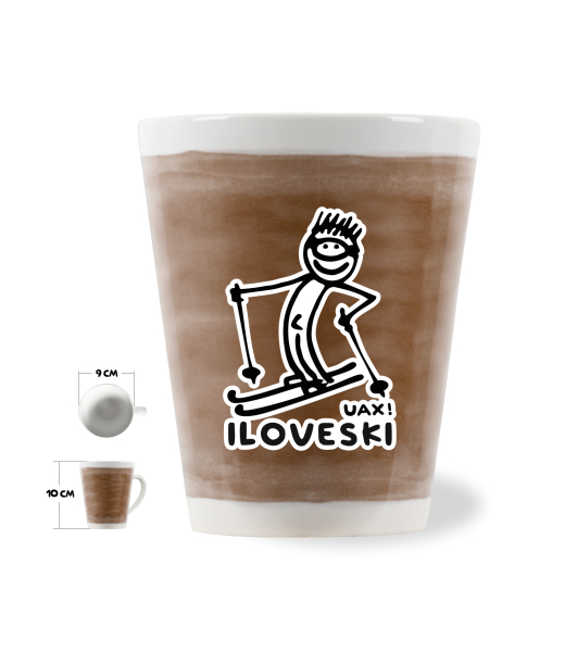The original LATTE CUP UAX! a volume of 0.25L with design Cycling with design 1122 I LOVE SKI in color BROWN SUGAR