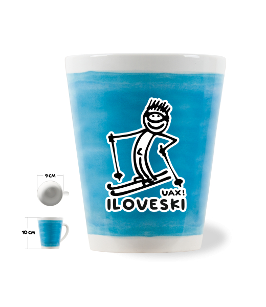 The original LATTE CUP UAX! a volume of 0.25L with design Cycling with design 1122 I LOVE SKI in color BLUE ATOLL