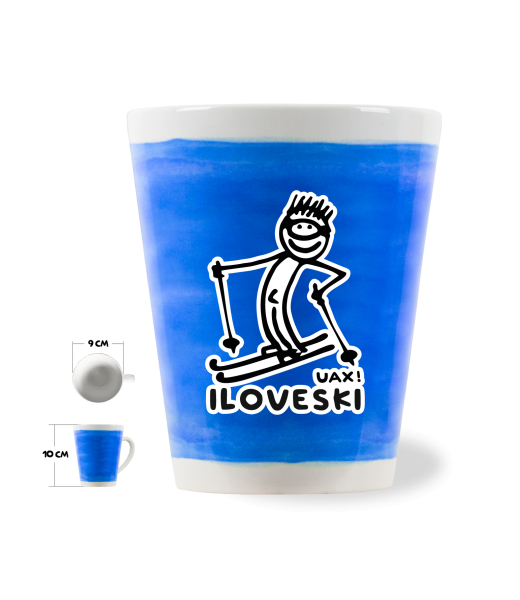The original LATTE CUP UAX! a volume of 0.25L with design Cycling with design 1122 I LOVE SKI in color DARK BLUE