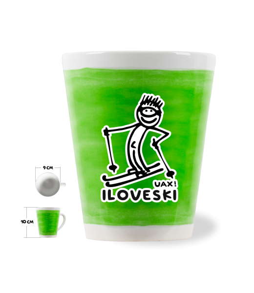 The original LATTE CUP UAX! a volume of 0.25L with design Cycling with design 1122 I LOVE SKI in color PARROT GREEN