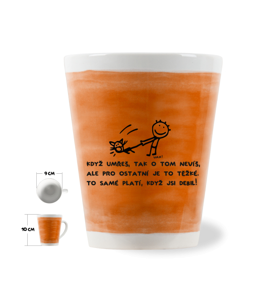 The original LATTE CUP UAX! a volume of 0.25L with design Cycling with design 1131 JE TO TĚŽKÉ in color SIGNAL ORANGE