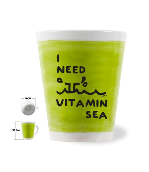 The original LATTE CUP UAX! a volume of 0.25L with design Cycling with design 1132 I NEED VITAMIN SEA in color GREEN LIMET