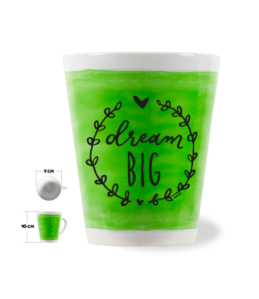 We make sustainable UAX clothing! - hand sewn in the Czech Republic uaxAccessories uaxCyclingCups and mugsLATTE CUP 0.25Ldesign 1286 - DREAM BIGPARROT GREEN