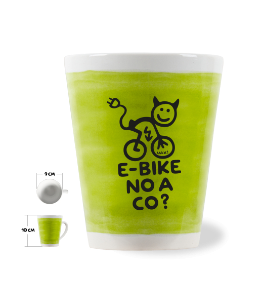 The original LATTE CUP UAX! a volume of 0.25L with design Cycling with design 1291 E-BIKE NO A CO? in color GREEN LIMET