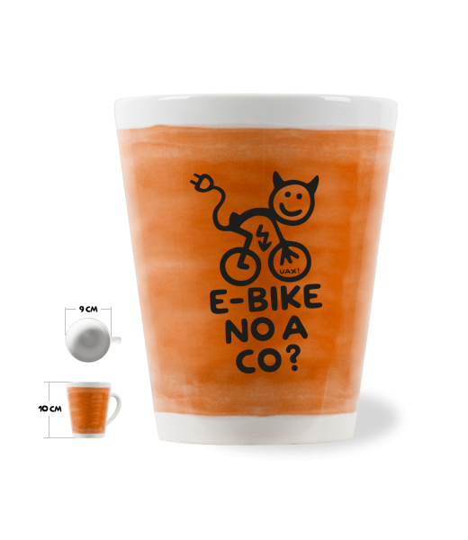 We make sustainable UAX clothing! - hand sewn in the Czech Republic uaxAccessories uaxCyclingCups and mugsLATTE CUP 0.25Ldesign 1291 - E-BIKE NO A CO?SIGNAL ORANGE