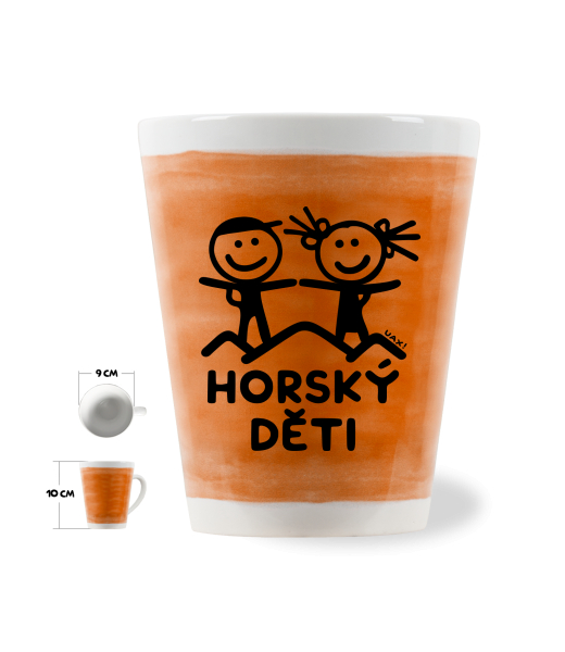 The original LATTE CUP UAX! a volume of 0.25L with design Cycling with design 1300 HORSKÝ DĚTI in color SIGNAL ORANGE