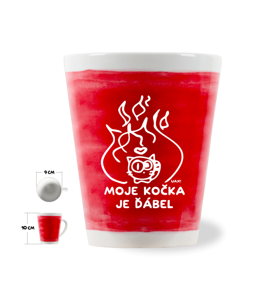 The original LATTE CUP UAX! a volume of 0.25L with design Cycling with design 1326 MOJE KOČKA JE ĎÁBEL in color CHILLY PEPPER RED