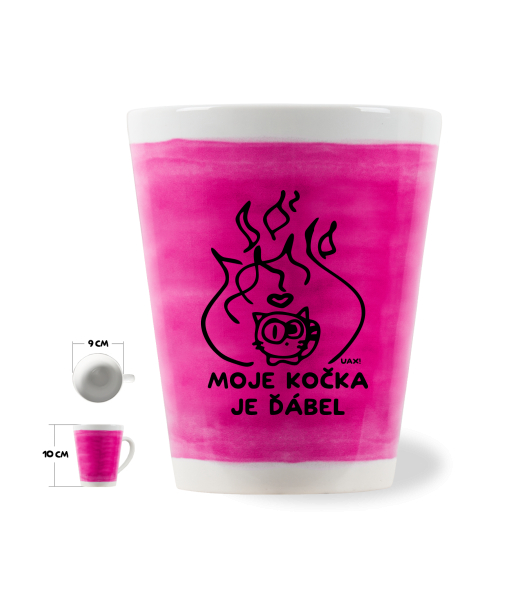 The original LATTE CUP UAX! a volume of 0.25L with design Cycling with design 1326 MOJE KOČKA JE ĎÁBEL in color INDIAN LILA