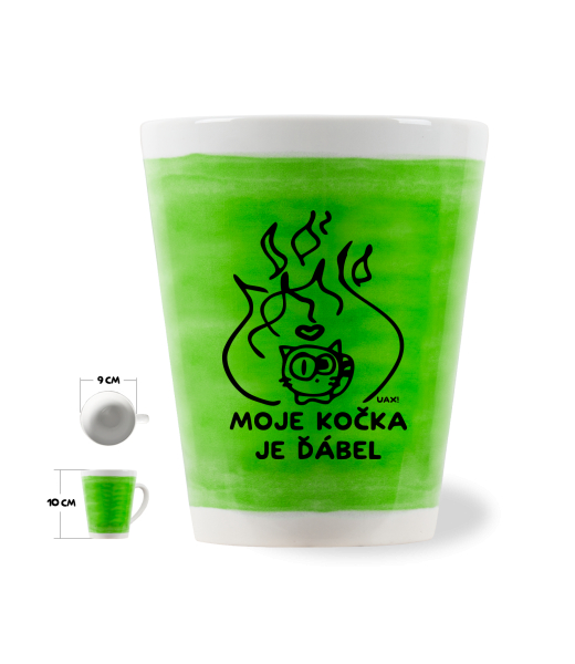 The original LATTE CUP UAX! a volume of 0.25L with design Cycling with design 1326 MOJE KOČKA JE ĎÁBEL in color PARROT GREEN
