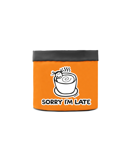 Designes supplement container in a flowerpot with printing. with design 1087 SORRY IM LATE in color SIGNAL ORANGE