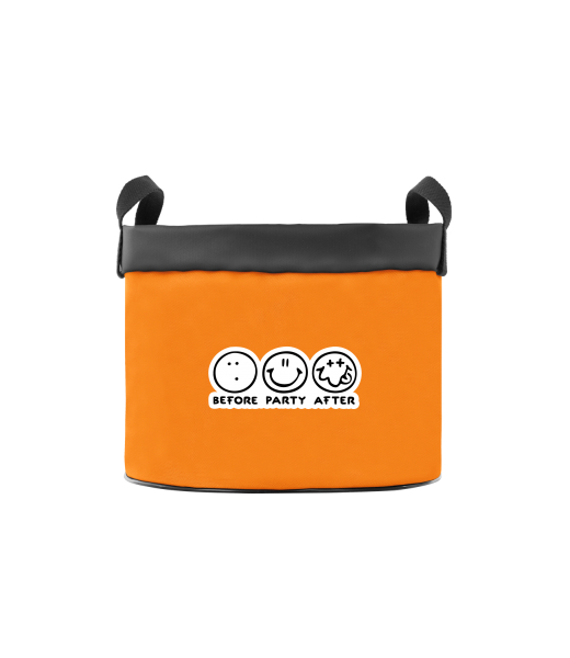 Designes container in a flowerpot 30cm with printing Home design accessories with design 1120 BEFORE PARTY AFTER in color SIGNAL ORANGE