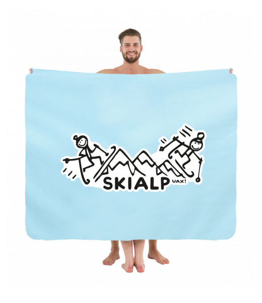 The original picnic blanket imprinted Home design accessories with design 401 SKIALP in color PASTEL BLUE