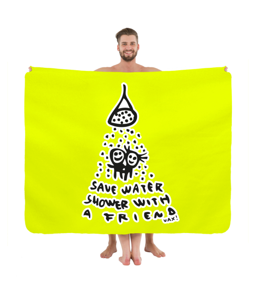 We make sustainable UAX clothing! - hand sewn in the Czech Republic uaxAccessories uaxHome Design AccessoriesTowelsPRINTED PICNIC BLANKETdesign 519 - SAVE WATERGREEN LIMET