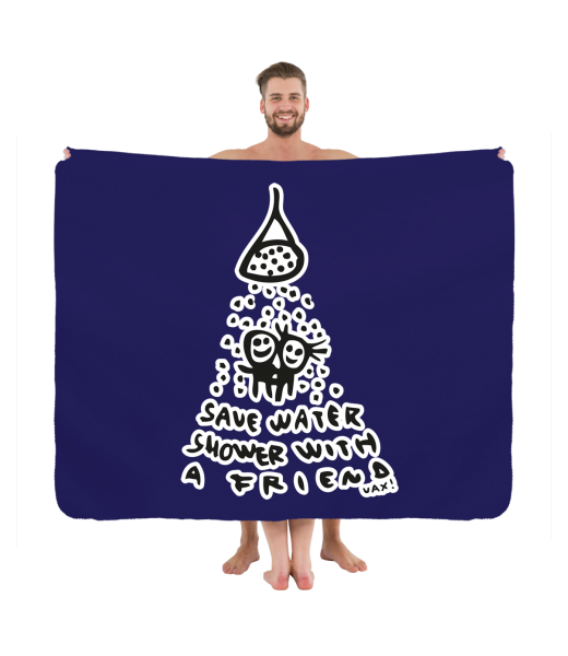 The original picnic blanket imprinted Home design accessories with design 519 SAVE WATER in color MIDNIGHT BLUE
