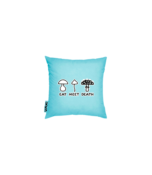 We make sustainable UAX clothing! - hand sewn in the Czech Republic uaxAccessories uaxSki collectionPillowPILLOW COVER 20x20design 1177 - EAT MEET DEATHPASTEL BLUE