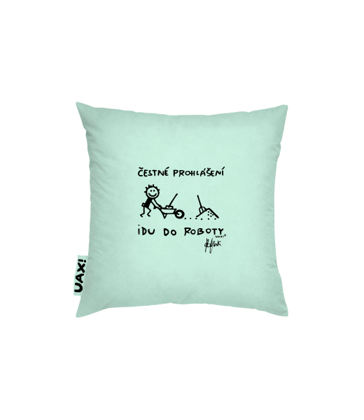 Pillow cover 40x40 Ski collection with design 1303 ČESTNÉ PROHLÁŠENÍ IDU DO ROBOTY in color MINT