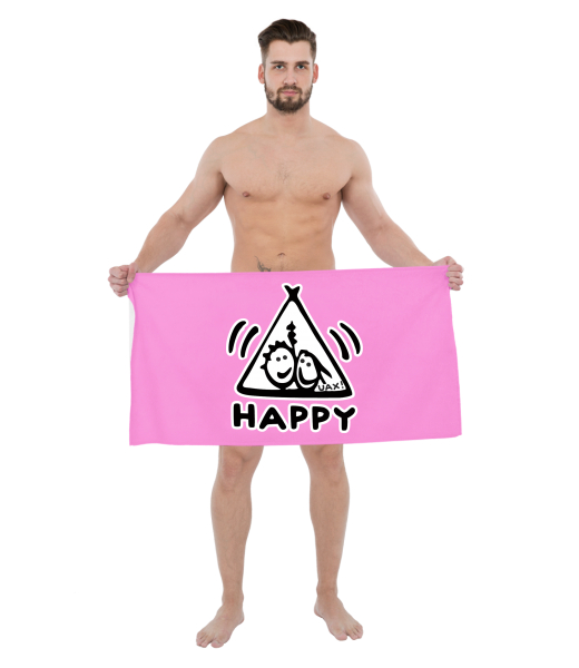 The original towel imprinted with UAX! Ski collection with design 1113 HAPPY in color INDIAN LILA