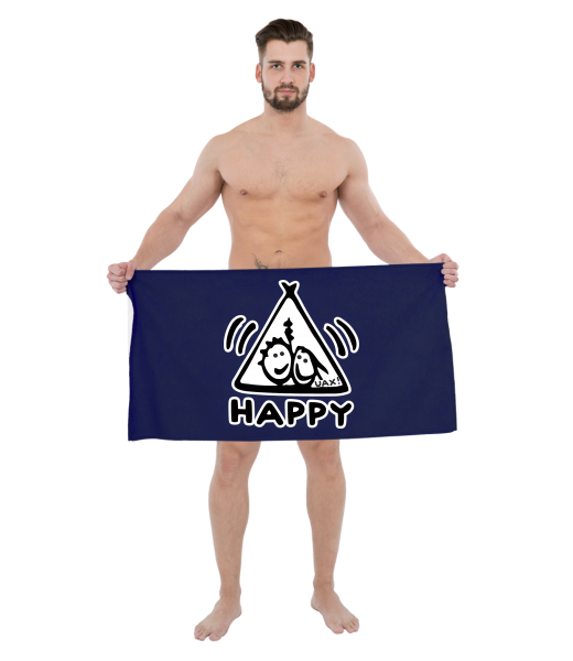 The original towel imprinted with UAX! Ski collection with design 1113 HAPPY in color MIDNIGHT BLUE