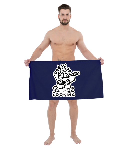 The original towel imprinted with UAX! Ski collection with design 1117 COOKING in color MIDNIGHT BLUE