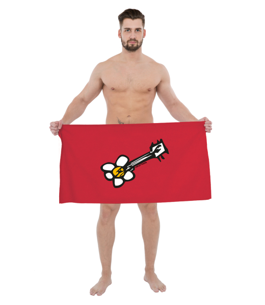 The original towel imprinted with UAX! Ski collection with design 443 KYTKARA in color RED