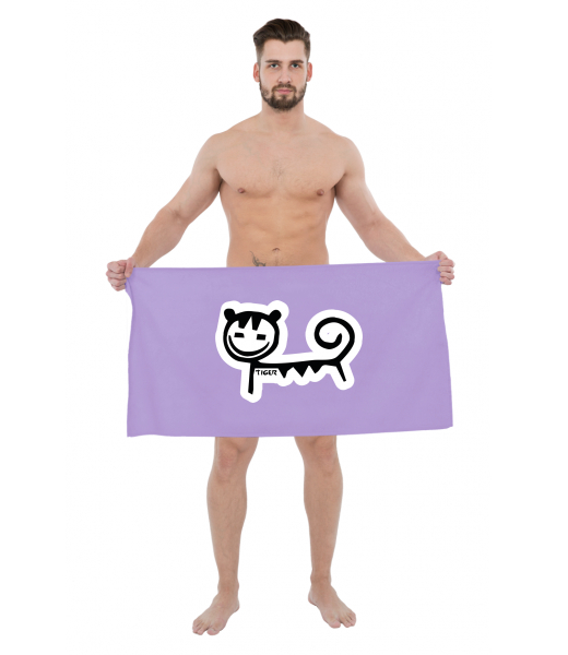 The original towel imprinted with UAX! Ski collection with design 476 TIGER in color LAVENDER
