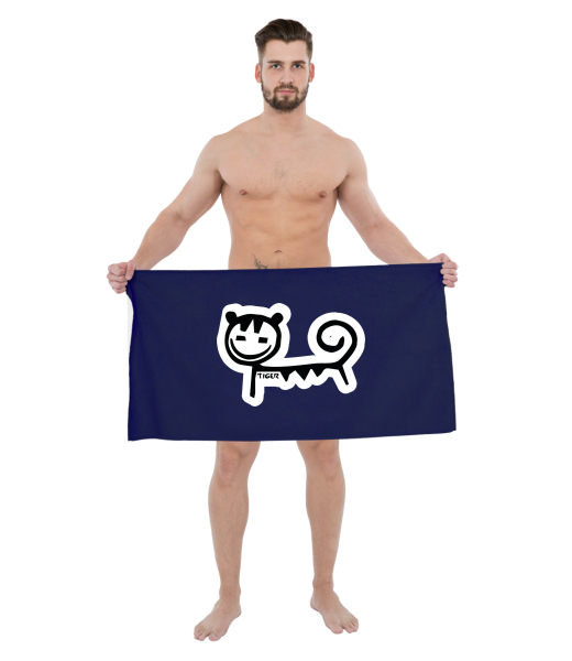 The original towel imprinted with UAX! Ski collection with design 476 TIGER in color MIDNIGHT BLUE