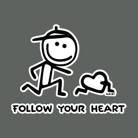 Thus, the printer selected image FOLOW YOUR HEART prepare to be on a sweatshirt , t-shirt , shorts , polo shirt, purse , laptop bag or perhaps a colorful planter. In the last stage eight days again passes control product quality for the expedition , and here to order printed FOLOW YOUR HEART packed in the original cardboard box , pack your fix with UAX design a bumper sticker.
