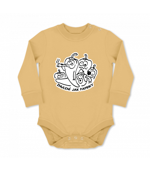 We make sustainable UAX clothing! - hand sewn in the Czech Republic uaxKids uaxAll productsBaby bodyBABY BODY LONGdesign 1245 - ZHULENÍ JAK PAPRIKYMUSTARD
