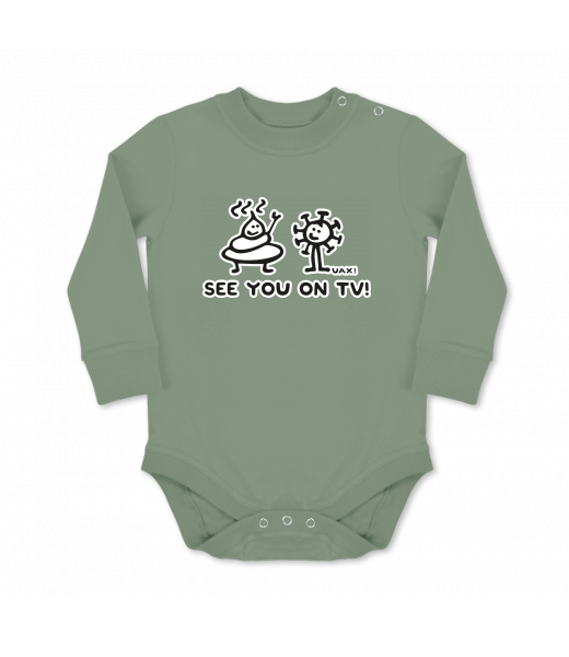 UAX baby body for kid with design 1306 SEE YOU ON TV in color OLIVA