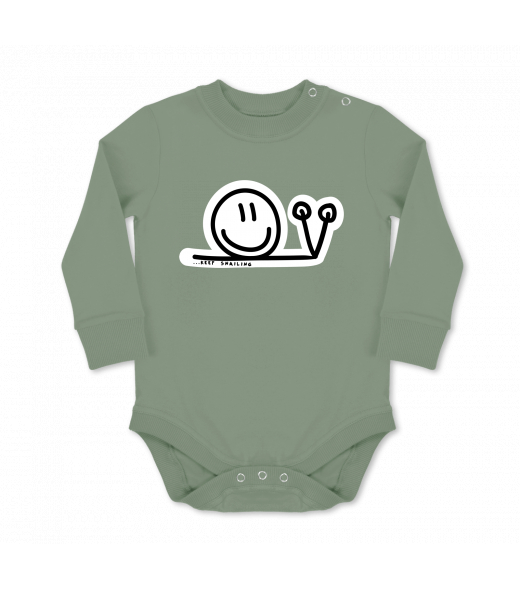 UAX baby body for kid with design 420 KEEP SNAIL in color OLIVA