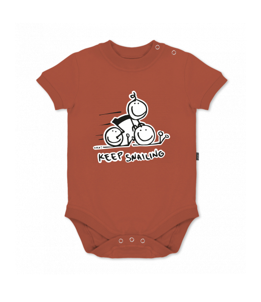 UAX baby body SHORT for kid with design 1017 KEEP SNAILING in color TERRA