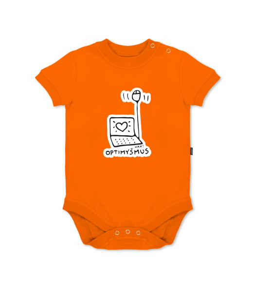 UAX baby body SHORT for kid with design 1040 OPTIMYŠMUS in color SIGNAL ORANGE