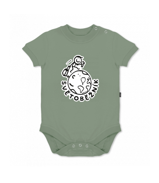 UAX baby body SHORT for kid with design 1047 SVĚTOBĚŽNÍK in color OLIVA