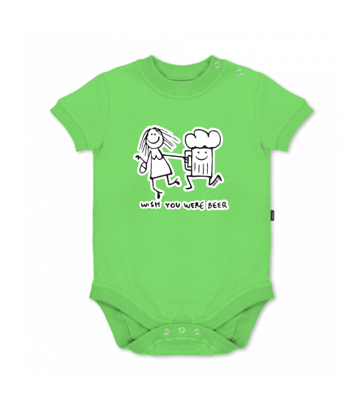 UAX baby body SHORT for kid with design 1049 WISH YOU WERE BEER in color APPLE