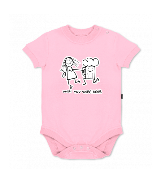 We make sustainable UAX clothing! - hand sewn in the Czech Republic uaxKids uaxAll productsBaby bodyBABY BODY SHORTdesign 1049 - WISH YOU WERE BEERBABY PINK