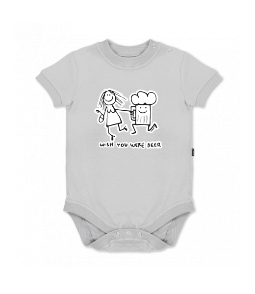 UAX baby body SHORT for kid with design 1049 WISH YOU WERE BEER in color CEMENT