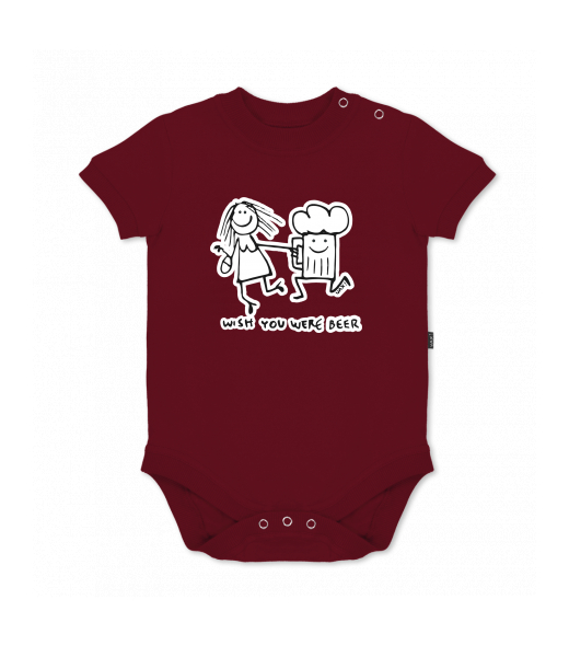 We make sustainable UAX clothing! - hand sewn in the Czech Republic uaxKids uaxAll productsBaby bodyBABY BODY SHORTdesign 1049 - WISH YOU WERE BEERDARK RED