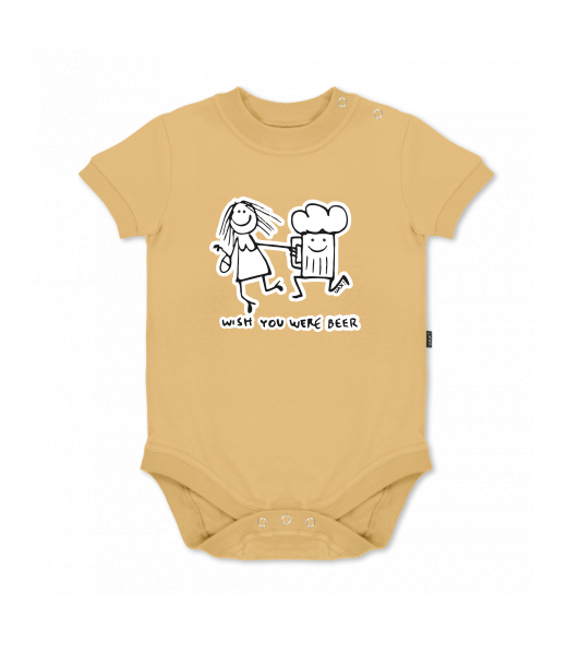 We make sustainable UAX clothing! - hand sewn in the Czech Republic uaxKids uaxAll productsBaby bodyBABY BODY SHORTdesign 1049 - WISH YOU WERE BEERMUSTARD