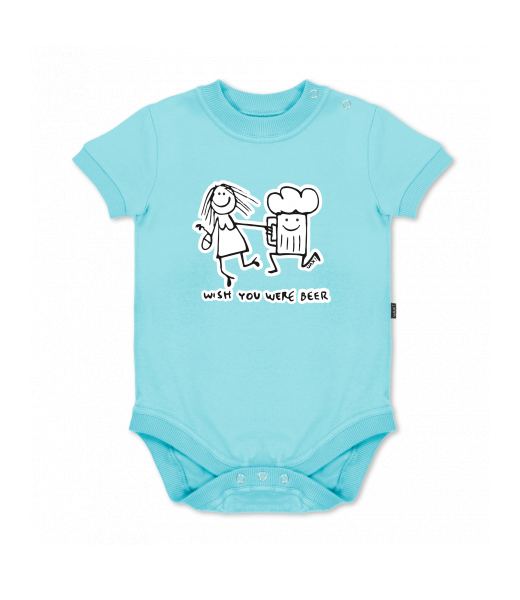 We make sustainable UAX clothing! - hand sewn in the Czech Republic uaxKids uaxAll productsBaby bodyBABY BODY SHORTdesign 1049 - WISH YOU WERE BEERPASTEL BLUE