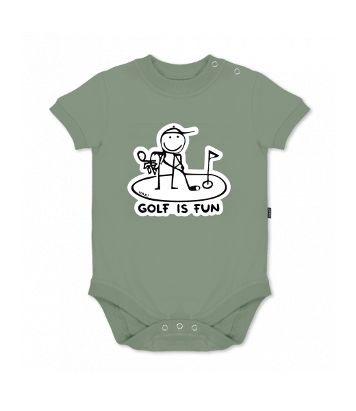 UAX baby body SHORT for kid with design 1057 GOLF IS FUN in color OLIVA