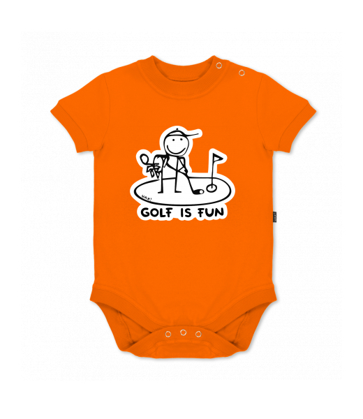 UAX baby body SHORT for kid with design 1057 GOLF IS FUN in color SIGNAL ORANGE