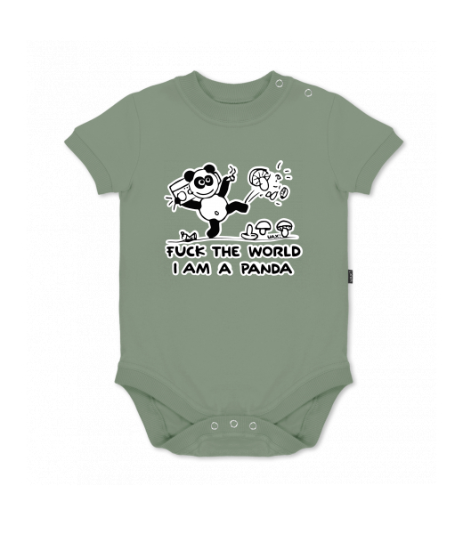 UAX baby body SHORT for kid with design 1060 I AM A PANDA in color OLIVA