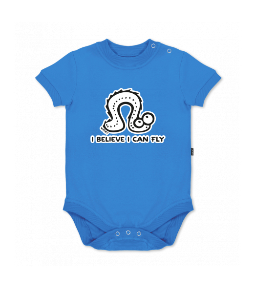UAX baby body SHORT for kid with design 1062 I BELIVE I CAN FLY in color CAPRI BLUE