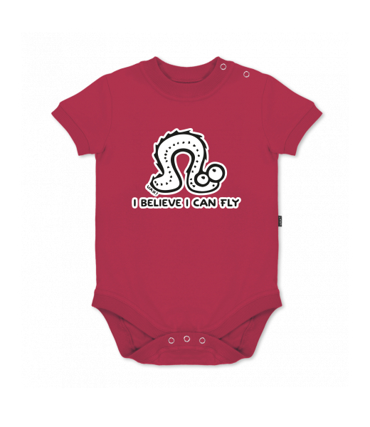 UAX baby body SHORT for kid with design 1062 I BELIVE I CAN FLY in color CHILLY PEPPER RED