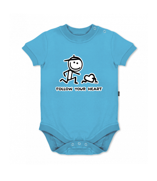 UAX baby body SHORT for kid with design 1063 FOLOW YOUR HEART in color BLUE ATOLL