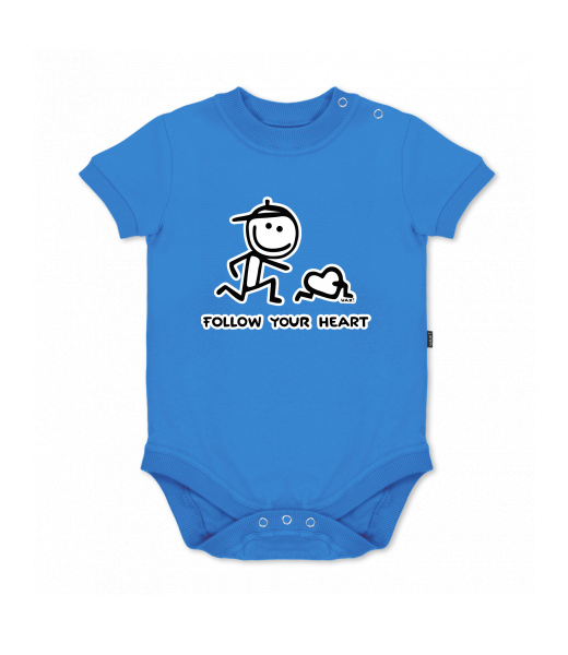 UAX baby body SHORT for kid with design 1063 FOLOW YOUR HEART in color CAPRI BLUE