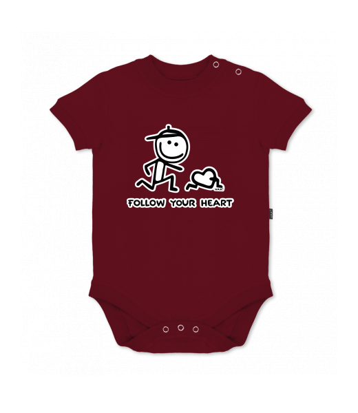 UAX baby body SHORT for kid with design 1063 FOLOW YOUR HEART in color DARK RED