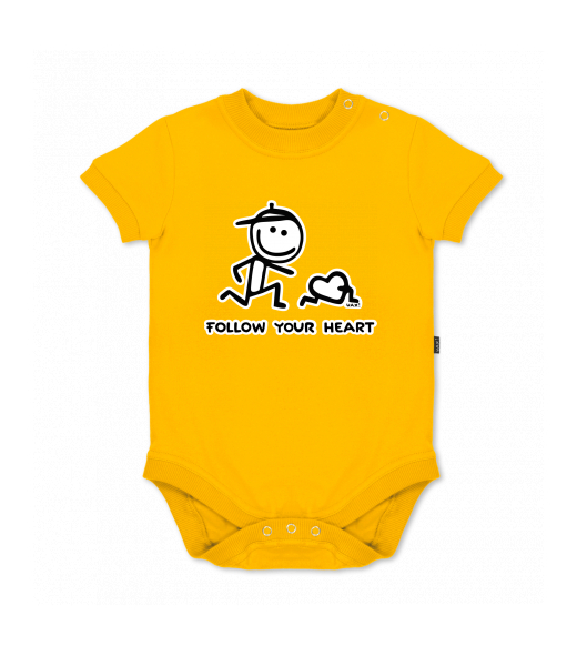 UAX baby body SHORT for kid with design 1063 FOLOW YOUR HEART in color GOLDEN CREAM
