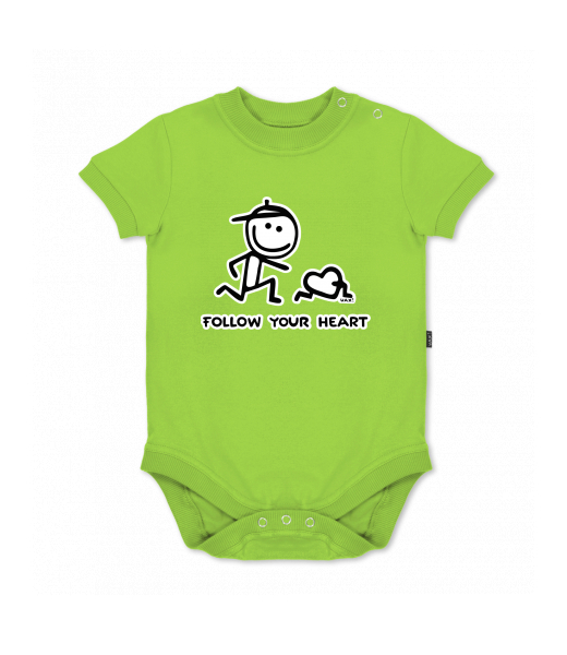 UAX baby body SHORT for kid with design 1063 FOLOW YOUR HEART in color PARROT GREEN