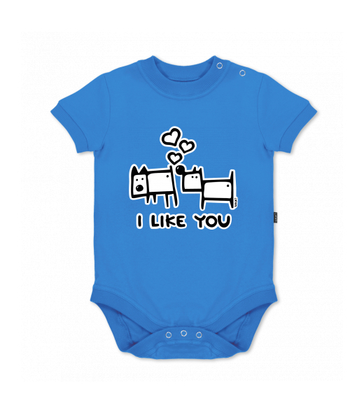 UAX baby body SHORT for kid with design 1066 I LIKE YOU in color CAPRI BLUE